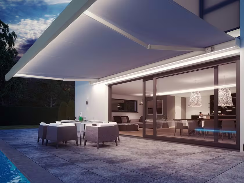 Markýzu CAMABOX je možné doplnit o integrované LED osvětlení.