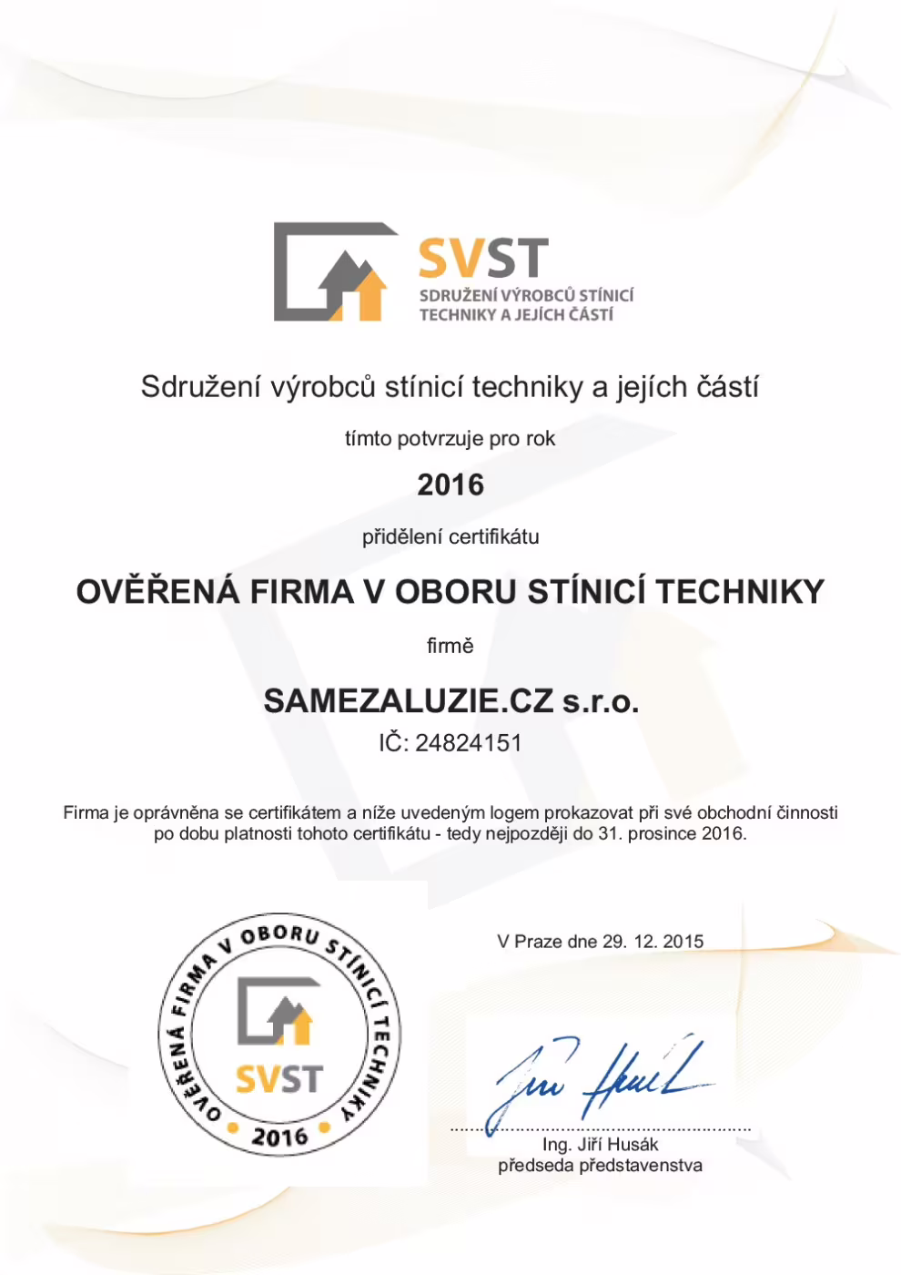 Vybírejte svého dodavatele stínění z prověřených firem, které naleznete na: www.svst.cz.