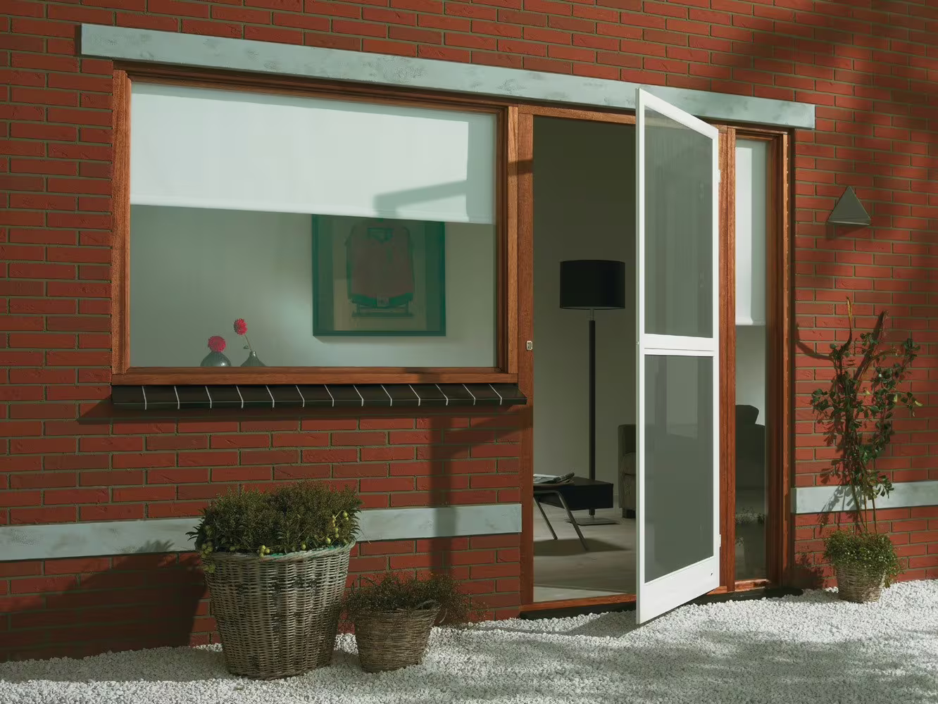 Tento typ sítě je možné dodat s neviditelnou síťovinou a hliníkový rám je možné lakovat do široké škály barev, samozřejmostí je rám v imitaci dřeva.